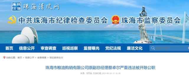 广东珠海市粮油购销有限公司原副总经理蔡卓尔被查