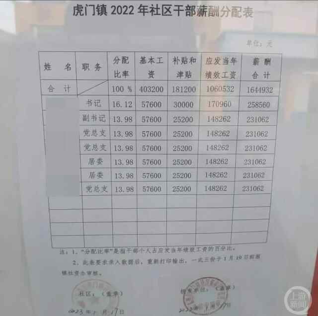 5月29日,一张题为“虎门镇2022年社区干部薪酬分配表”的图片在社交媒体引发关注。记者算了一笔账,社区干部平均月薪有2万元左右。