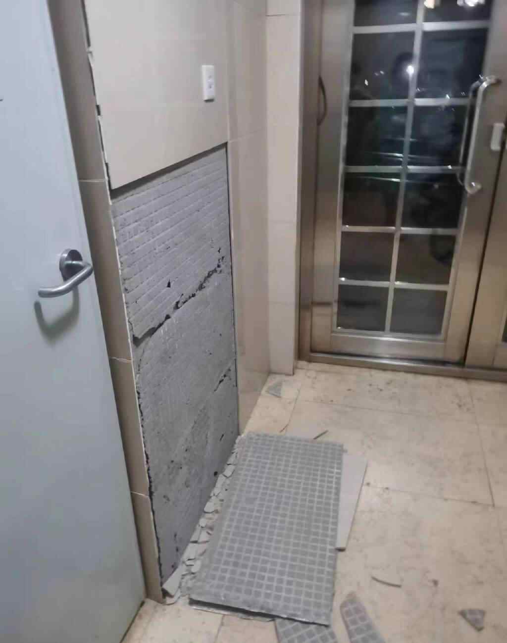 住在碧桂园凤锦庭院小区内的王先生(化名)告诉记者,昨日(5月31日)下午,他听说小区外的八里台东路部分路面翘了起来,然后路就被封了。后来,他发现所居住的住宅楼也出现了开裂,到了晚上六七点钟,小区里开裂的楼也被封了。