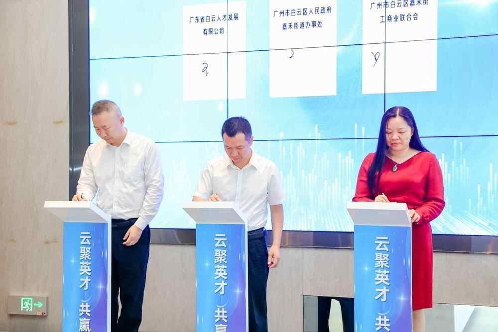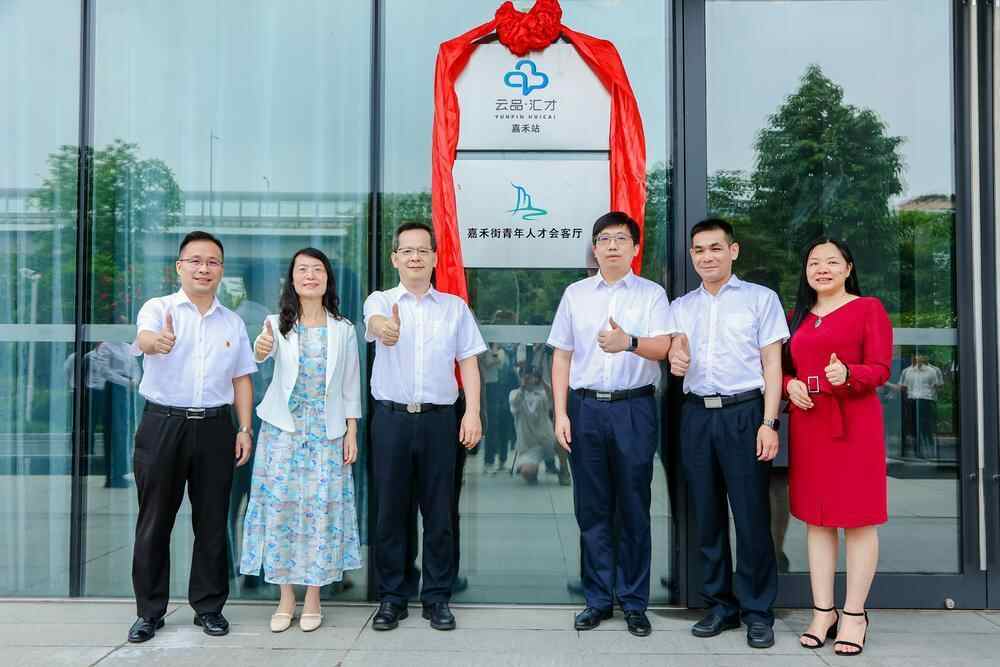 活动现场,白云区委常委、组织部部长赵虎,市委组织部人才二处处长柯欣,区委组织部副部长黄钜泉,嘉禾街党工委书记张丹莉,白云金控集团党委副书记、副董事长、总经理湛珊和嘉禾街工商业联合会会长叶会珍共同为白云区“云品·汇才”(嘉禾站)揭牌。
