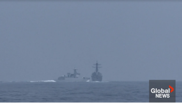 据加拿大《环球新闻》3日报道,在当天美国和加拿大军舰过航台湾海峡时,在现场对其跟监警戒的中国军舰险些撞到美军“钟云”号驱逐舰。