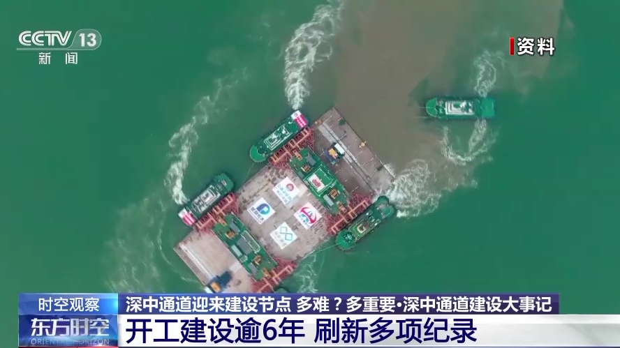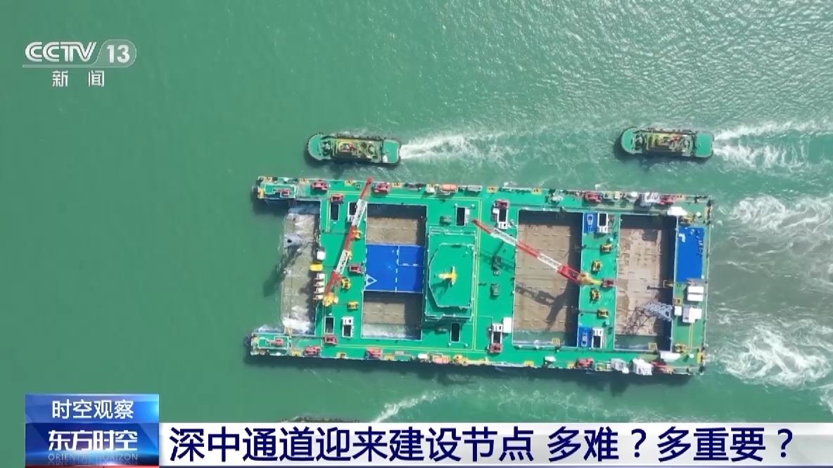 2020年6月17日,在世界首制的沉管浮运安装一体船的助力下,深中通道首节沉管E1管节完成沉放安装。2021年8月30日,隧道东端首节沉管E32管节完成沉放对接。E32管节为超宽、变宽管节,横断面最宽处为55.46米,突破了超宽、变宽沉管管节在浮运安装方面的世界纪录。