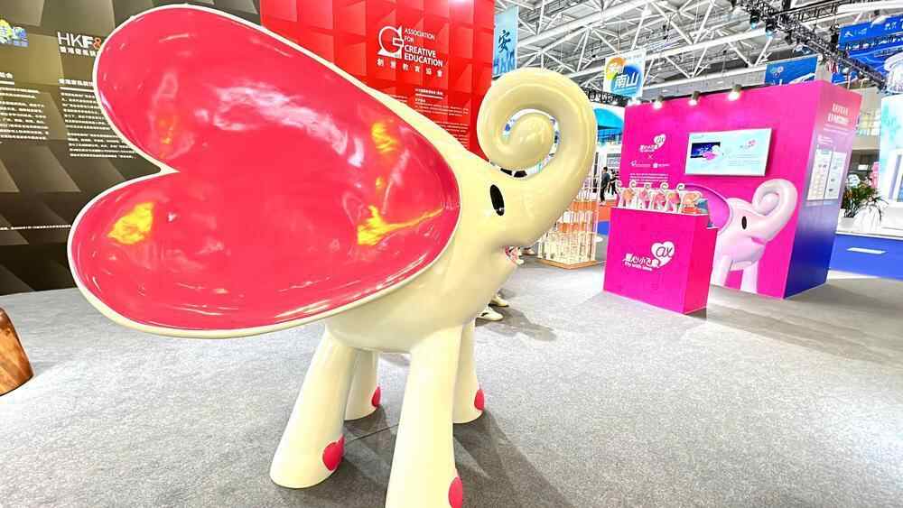 香港创意馆以香港创意设计为主题展览内容,让观众了解香港设计及创意产业在粤港澳大湾区中发展的优势。现场展出了由十多位设计导师和40位学员创作的原创家具作品,以及与“深圳关爱行动”推出的公益IP“爱心小飞象”。