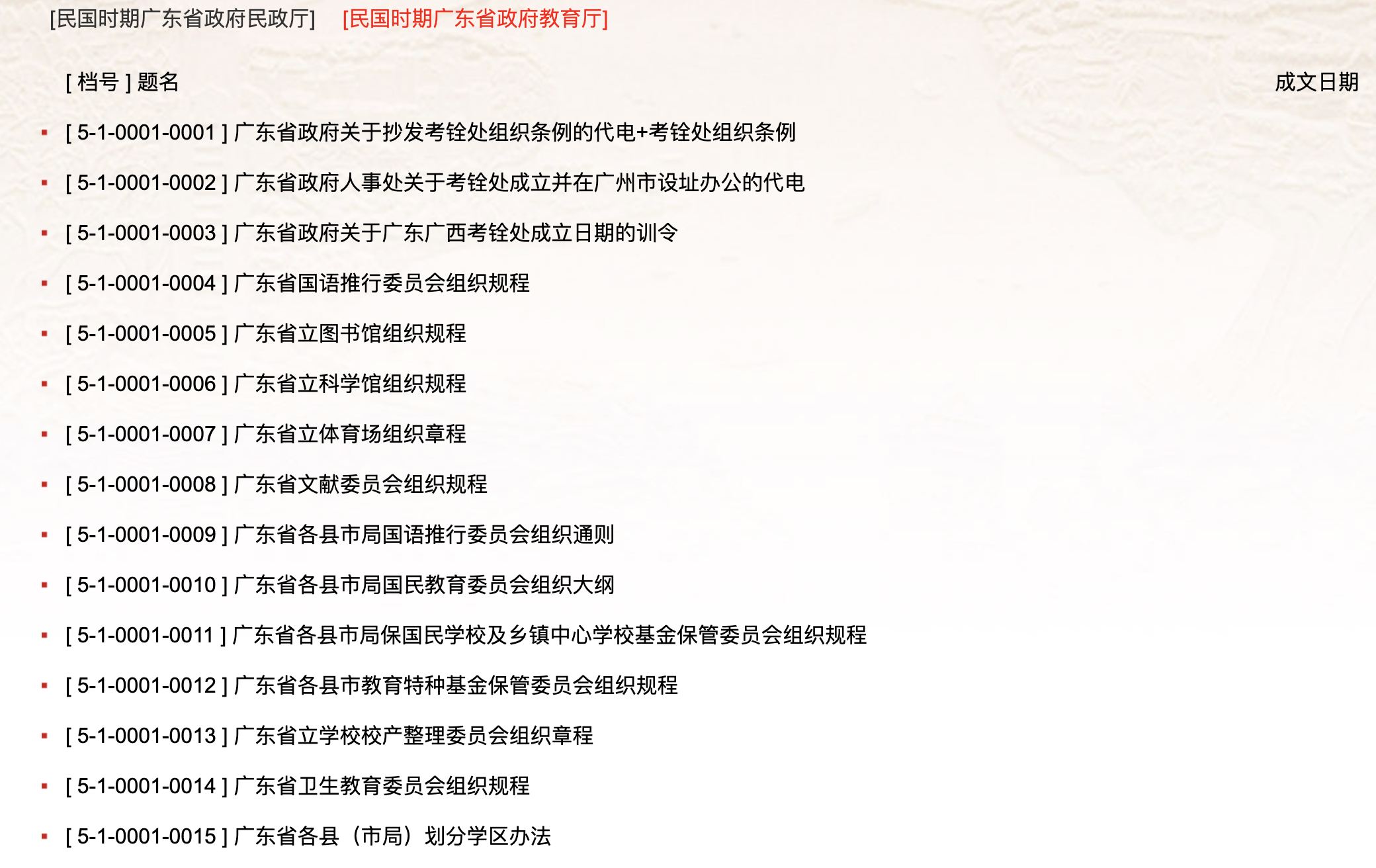 为使档案资源更好地为经济社会发展服务,广东省档案馆再次在网站上公布了10233条馆藏民国广东省政府教育厅档案文件级目录。