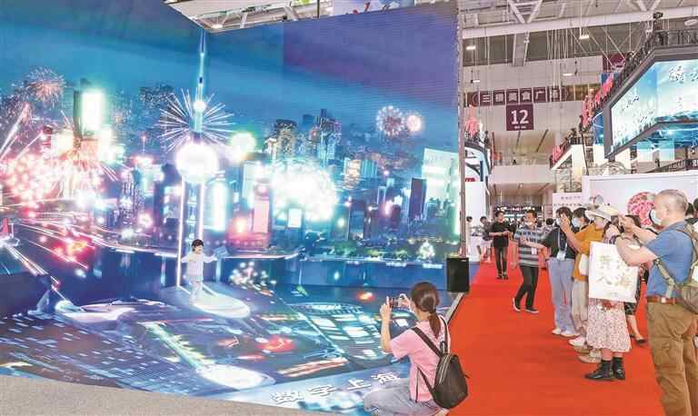 在文化产业综合馆B馆上海展厅,裸眼3D数字成像系统展示的上海形象吸引了众多嘉宾。 深圳特区报记者 周红声 刘钢 摄