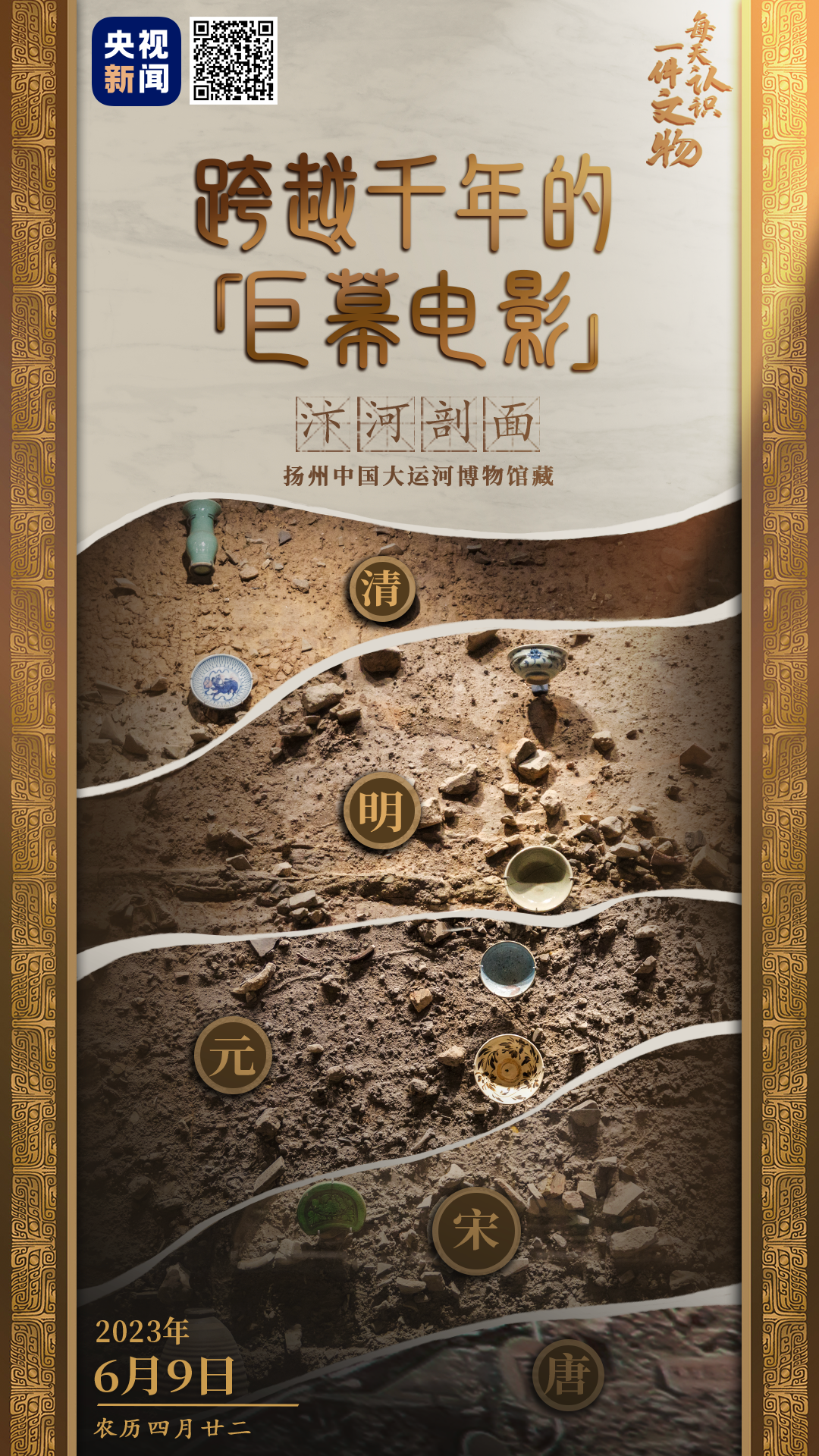 △州桥遗址的汴河剖面图,揭示大运河(汴河)自唐宋至清代发展演变过程。