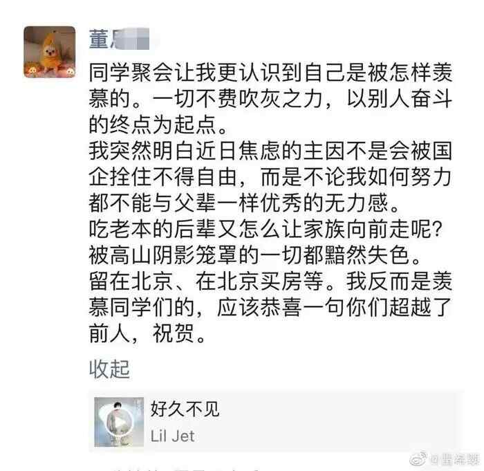据上游新闻报道,其记者在网上搜索发现,网友晒出的疑似董某某个人社交账号炫富的内容包括并不仅限于“一切不费吹灰之力,以别人奋斗的终点为起点”“两个淘宝账号花了106万”“收拾了仨礼拜终于妥帖了,新家”“上周无油祖母绿,这周老铺大号玫瑰花窗,终于一套毕业”“谢谢Tiffany,钻戒有了新目标”等。