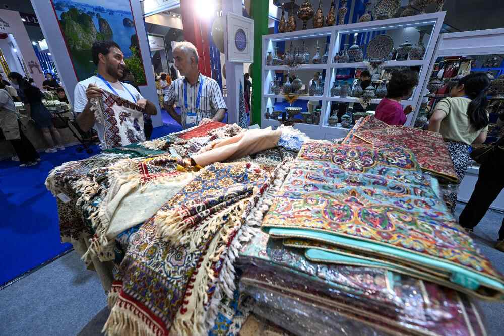 来自伊朗的参展商马迪在展台前向观众介绍波斯地毯、藏红花等展品。他说,中国提出的共建“一带一路”倡议让他想起了东方古老的丝绸之路。“这是一个伟大的想法,可以让不同文化的国家增进沟通和理解。希望中伊两国未来继续发展文化交流,增进两国人民的友谊。”