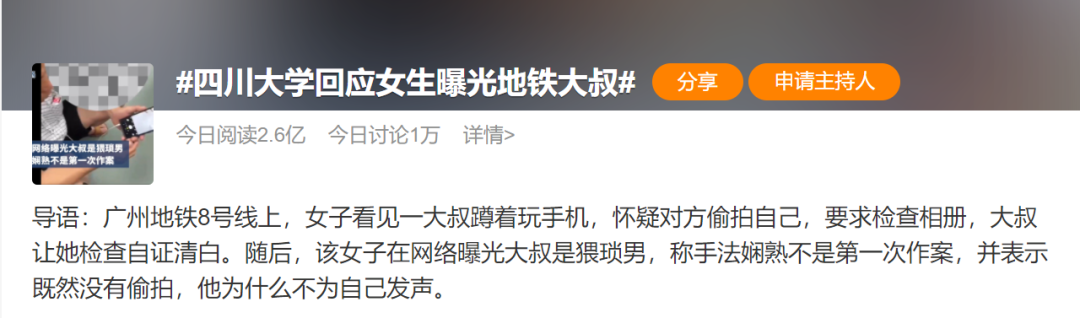 另一方面,该女子在未发现被偷拍后,仍然选择未做任何遮挡,在网络曝光大叔是“猥琐男”,称其手法娴熟不是第一次作案,已涉嫌侵犯他人肖像权、隐私权等,对他人造成严重影响。