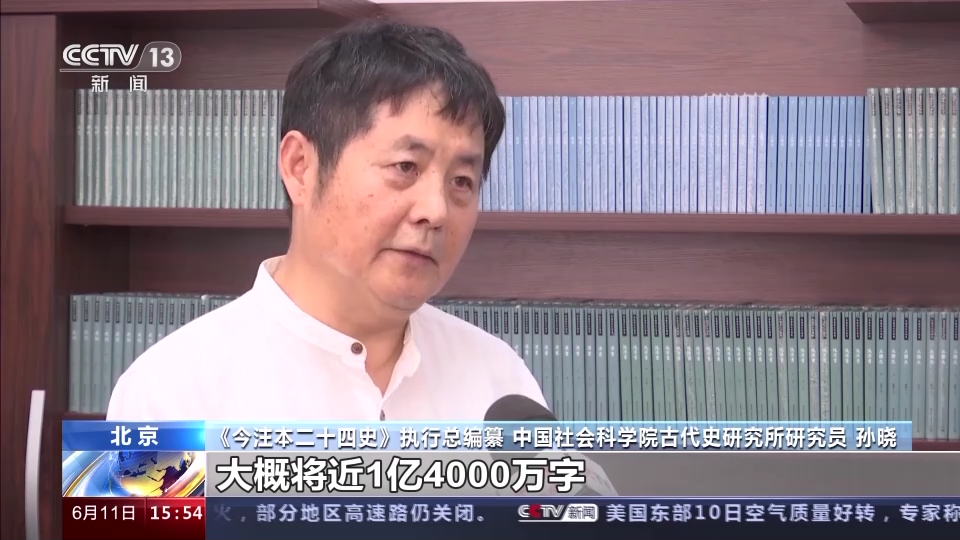 《今注本二十四史》执行总编纂 中国社会科学院古代史研究所研究员 孙晓:这个书原版大概是不到4000万字,等我们注释完了以后大概将近14000万字,就等于增加了1亿多字,这1亿多字是今注。鉴古知今,有哪些优良的这种传统文化可以继承,有哪些兴亡衰败的教训我们可以汲取,这是我们从史书中能得到的东西。