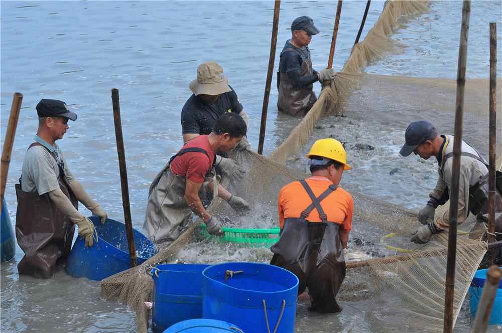 渔民们开网捞鱼