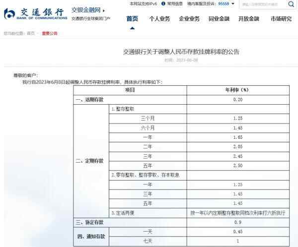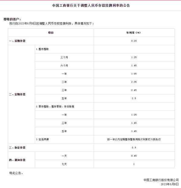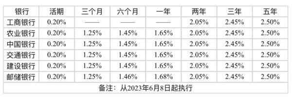 6月8日,工商银行、农业银行、建设银行、中国银行、交通银行和邮储银行等6家国有银行再次下调存款挂牌利率。其中,人民币活期存款利率下调5个基点至0.20%,二年期人民币定期存款利率下调10个基点至2.05%,三年期和五年期挂牌利率均下调15个基点分别至2.45%和2.5%。
