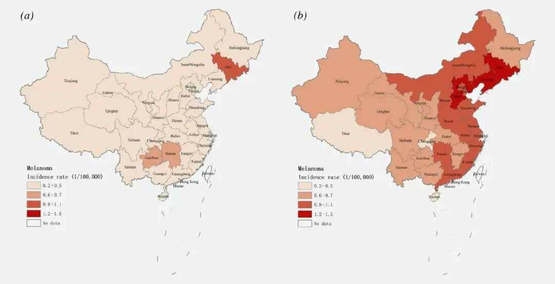 1. 紫外线照射。紫外线辐射可能会加大患黑色素瘤的风险。研究人员经过对我国33个省市黑色素瘤的分析发现,不同省份的发病率存在差异。东部和东北地区较高,尤其是一些沿海省份。纬度、海拔和气候条件下,紫外线照射更强的地区,黑色素瘤发病率相对较高。