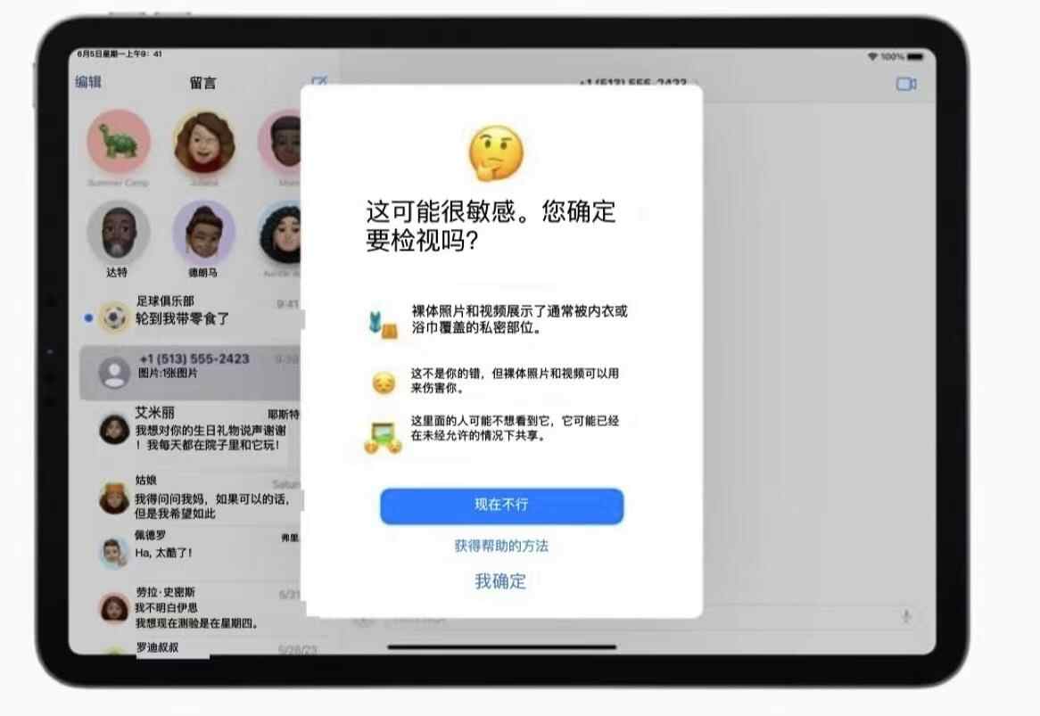 另外,值得注意的是,在近日苹果发布的隐私更新中,苹果对隔空投送等又进一步更新。当用户收到不良信息会被提醒“这可能很敏感,你确定要检视吗?”
