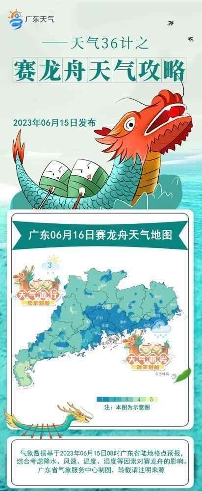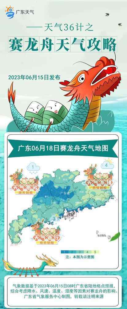 龙舟比赛离不开水,但“龙舟水”天气则可能影响龙舟比赛的进行。6月15日,广东省气象服务中心根据龙舟竞渡特点,对16日至18日期间广东的龙舟竞渡发布天气攻略。除了从防灾减灾角度提醒龙舟竞渡参与者注意“龙舟水”天气外,也介绍哪些天气条件适合赛龙舟。