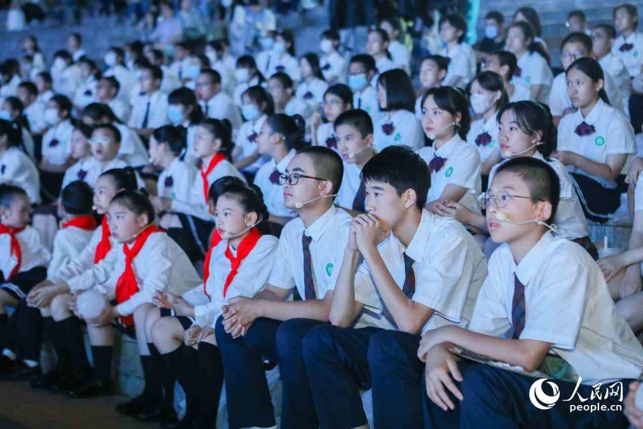 福建省厦门第六中学、厦门市青少年宫、厦门市大同小学共同参演歌曲《敬长风》。人民网摄