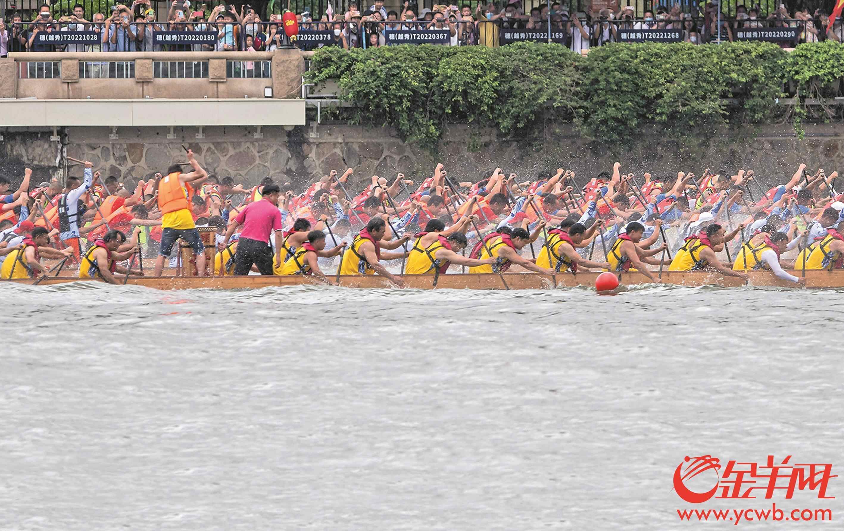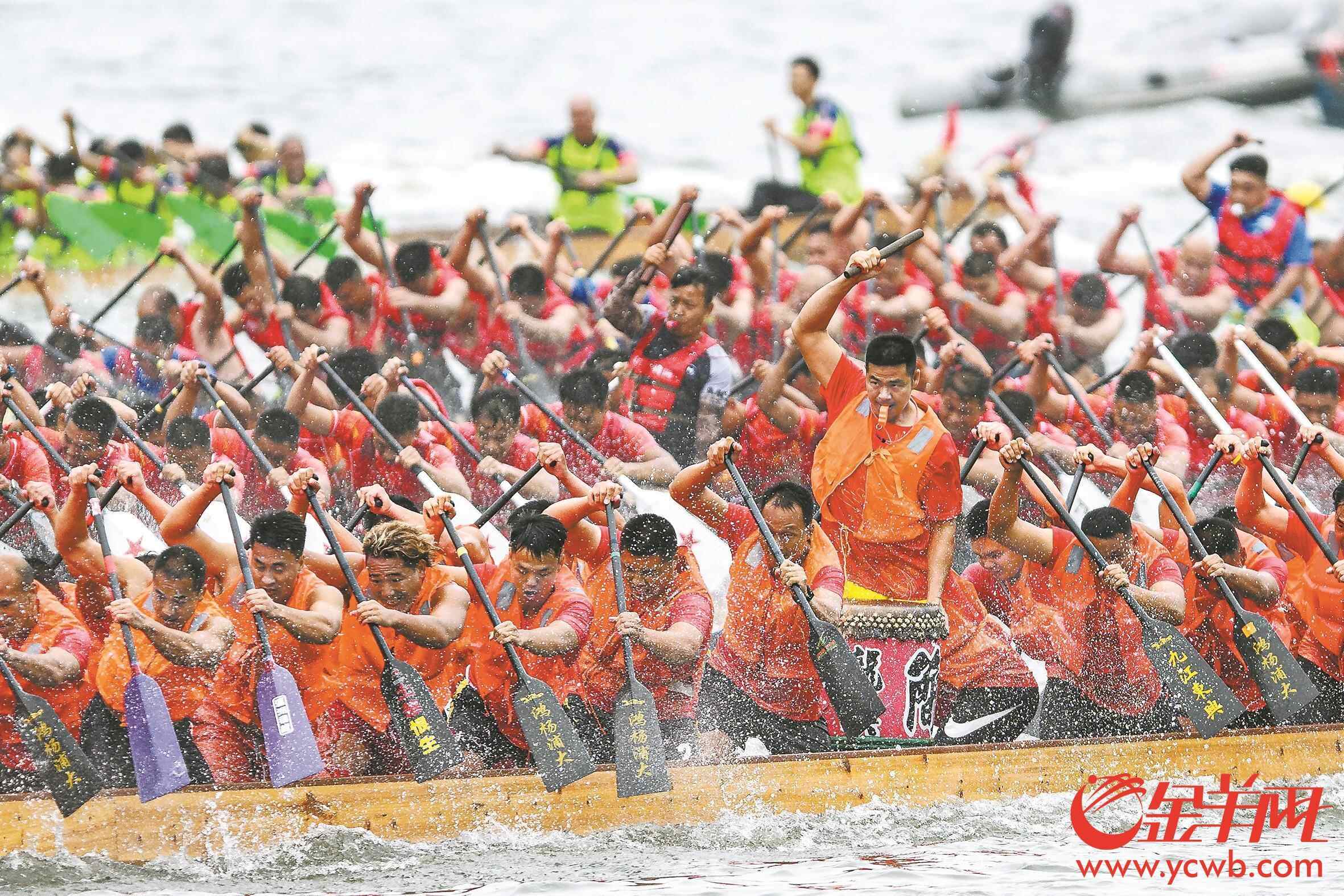 当天,随着短跑名将苏炳添一声鸣锣发令,比赛在中大北门广场至广州大桥之间的珠江河段拉开大幕。125支龙舟队击水奋楫,上演“速度与激情”;无数观众江畔呐喊,共享传统文化盛事。