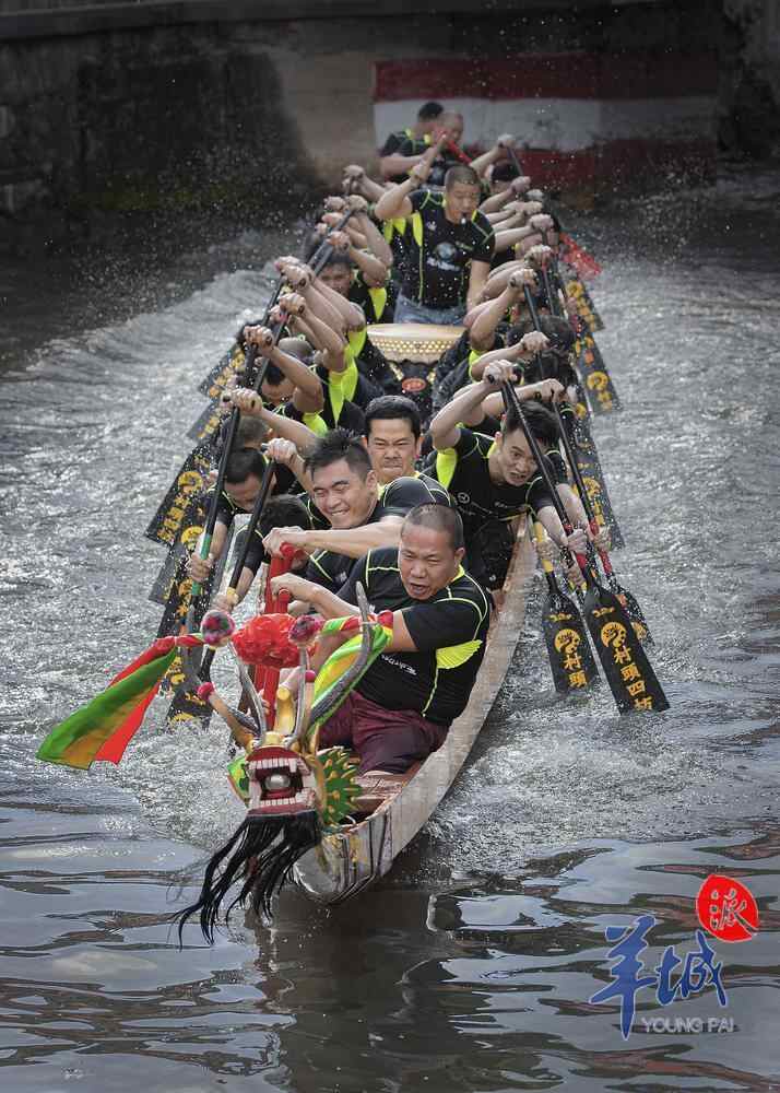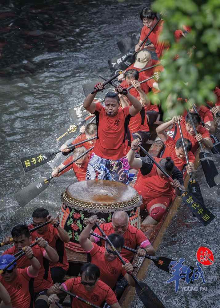 我在与叠滘的年轻人聊天时发现,这其实是叠滘的民俗信仰在代际中传承的一种独特方式。22岁的叠滘潭头村青年李文权回忆道,自己五六岁时,“老豆”就会带他在岸边看每年的端午龙船赛,七八岁时就有机会上龙船玩耍,十三四岁就开始逐渐当起了“扒仔”。当孩子逐渐长大,尽管为求学和工作各奔东西,每年的端午前夕,有时间的孩子都会回来参加漂移训练。“村里没有专业运动员,人人都是‘专业运动员’。”李文权表示,一条龙船上,年轻人要从“扒仔”当起,而上一辈的扒仔或转职教练,技术好的则担任舵手,在船头和船尾给年轻人“压阵”,一按一扒之间,大家对村子的归属和代际传承悄然完成。