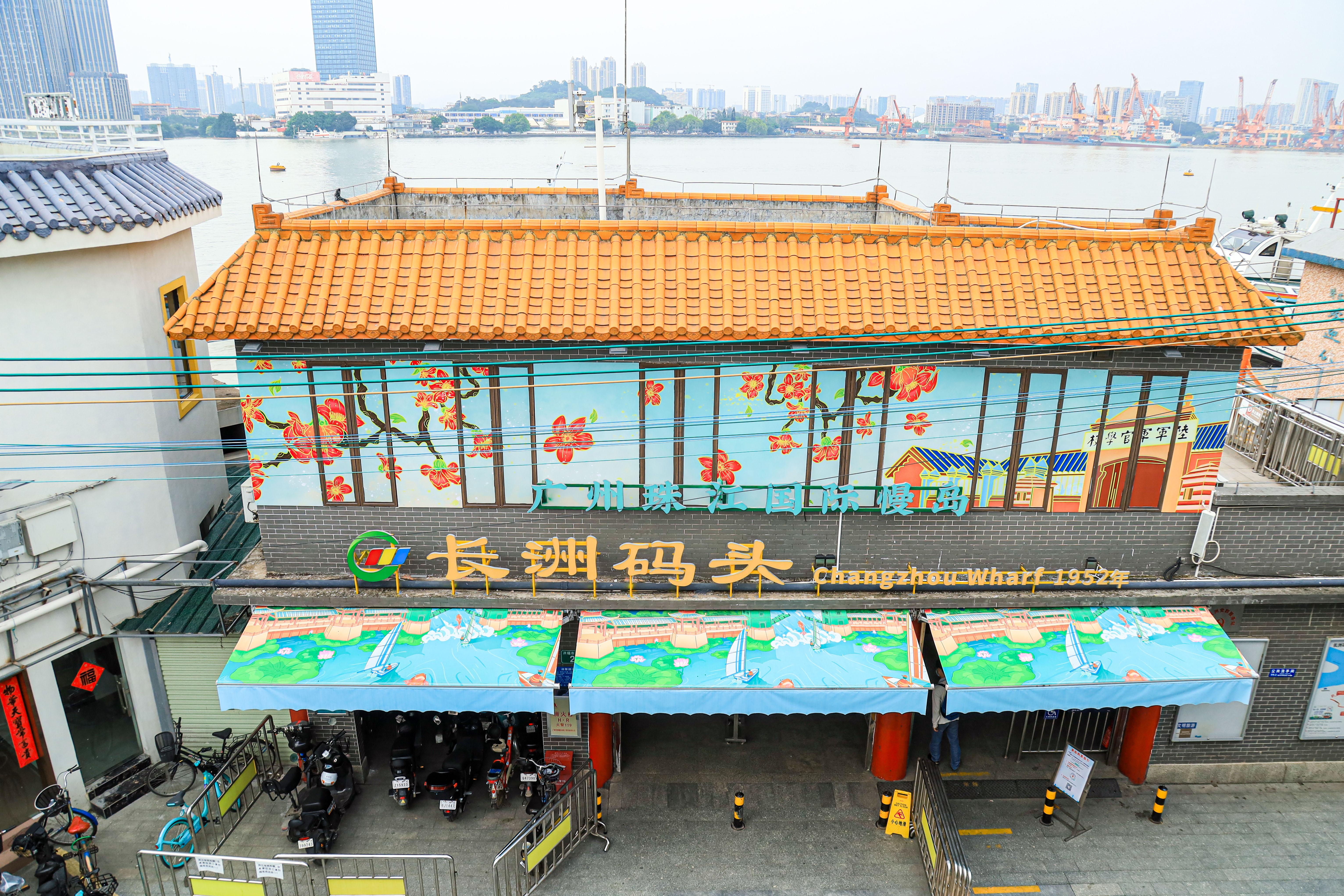 S10鱼珠-长洲“珠江国际慢岛”主题航线将长洲岛“慢城文化”“红色文化”“岭南文化”融入其中。长洲码头靠江边墙面增加了中山公园和黄埔军校风光图,并将原有单色篷布替换为慢岛风光主题篷布。原牌匾也进行了升级改造,增加“广州珠江国际慢岛”标识,使码头更具有辨识度。