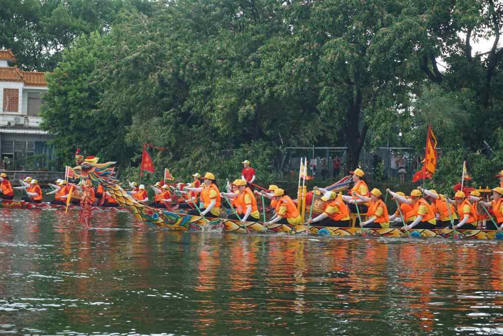 尽管当天烈日当空,并不时下起小雨,但队员们的热情反而更加高涨。在紧促的鼓声中,划手们倾力划桨、齐声呐喊,凤舟之上彩旗飘扬,女队员们齐心协力奋楫破浪,体现出揭阳浓郁的乡土文化和团结奋进的精神。