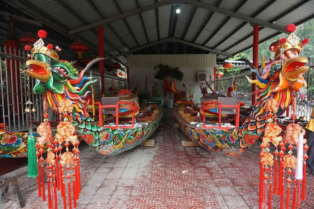 在经过祭祀、出阁、鸣礼炮、点睛等仪式之后,4条凤舟从凤舟阁中被抬到水中。“凤舟顺水活动一般会选在龙舟赛之前。端午节即将到来,今年我们选取吉日,在五月初一举行顺水仪式,希望能够让大家一起欢度端午佳节!”点睛仪式主持人林树潮告诉记者,参与本次巡游的凤舟共有4条,除了舵手是男性之外,其余队员都是女性。
