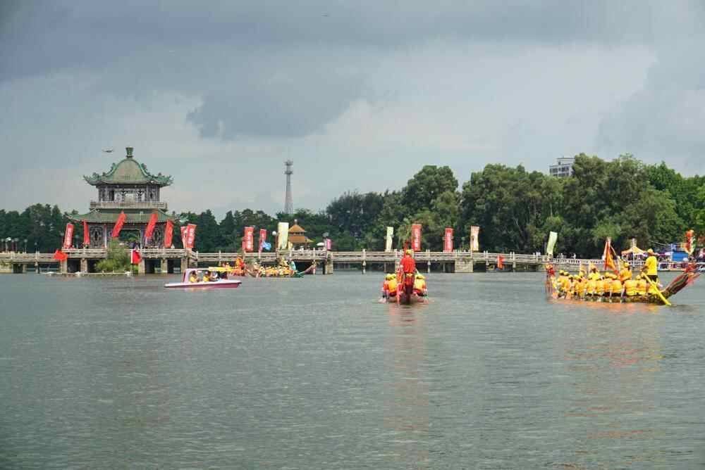 6月18日上午,揭阳市榕城区在西湖公园开展西湖传统凤舟巡游活动,为揭阳市首届龙舟民俗文化周拉开精彩序幕。舵手、鼓手、划手们通力合作,4条凤舟在西湖上劈浪前行,与古色古香的建筑交相映衬,更显传统民俗文化的独特魅力。