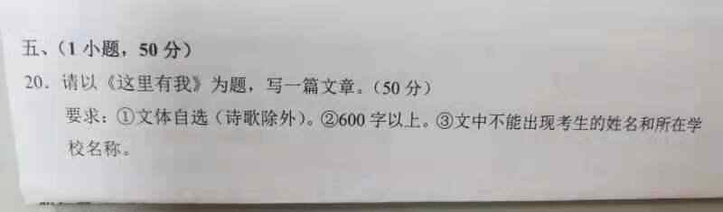 请以《这里有我》为题,文体自选(诗歌除外),写一篇600字以上作文,文章不能出现考生姓名和所在学校名称。