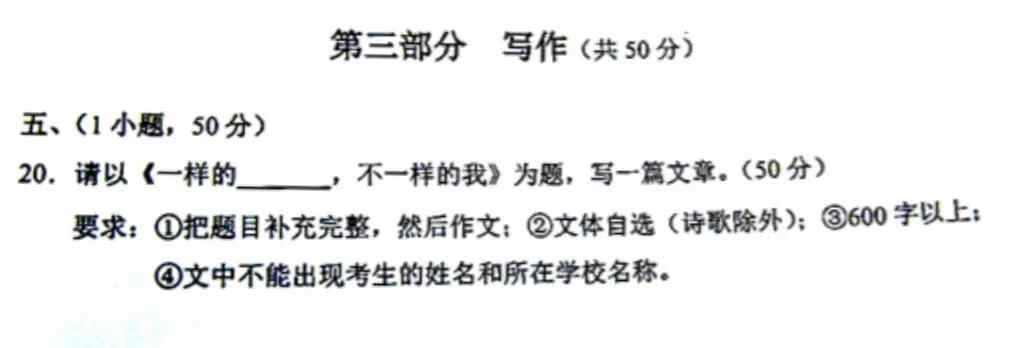 请以《一样的_______,不一样的我》为题,写一篇文章。(50分)