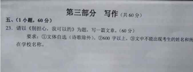 请以《别担心,我可以的》为题,文体自选(诗歌除外),写一篇600字以上作文,文章不能出现考生姓名和所在学校名称。