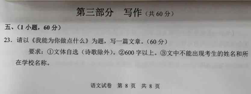 6月20日,2023年广州中考开考。上午进行语文科目考试,记者从广州市招考办获悉,今年中考语文作文题目是: