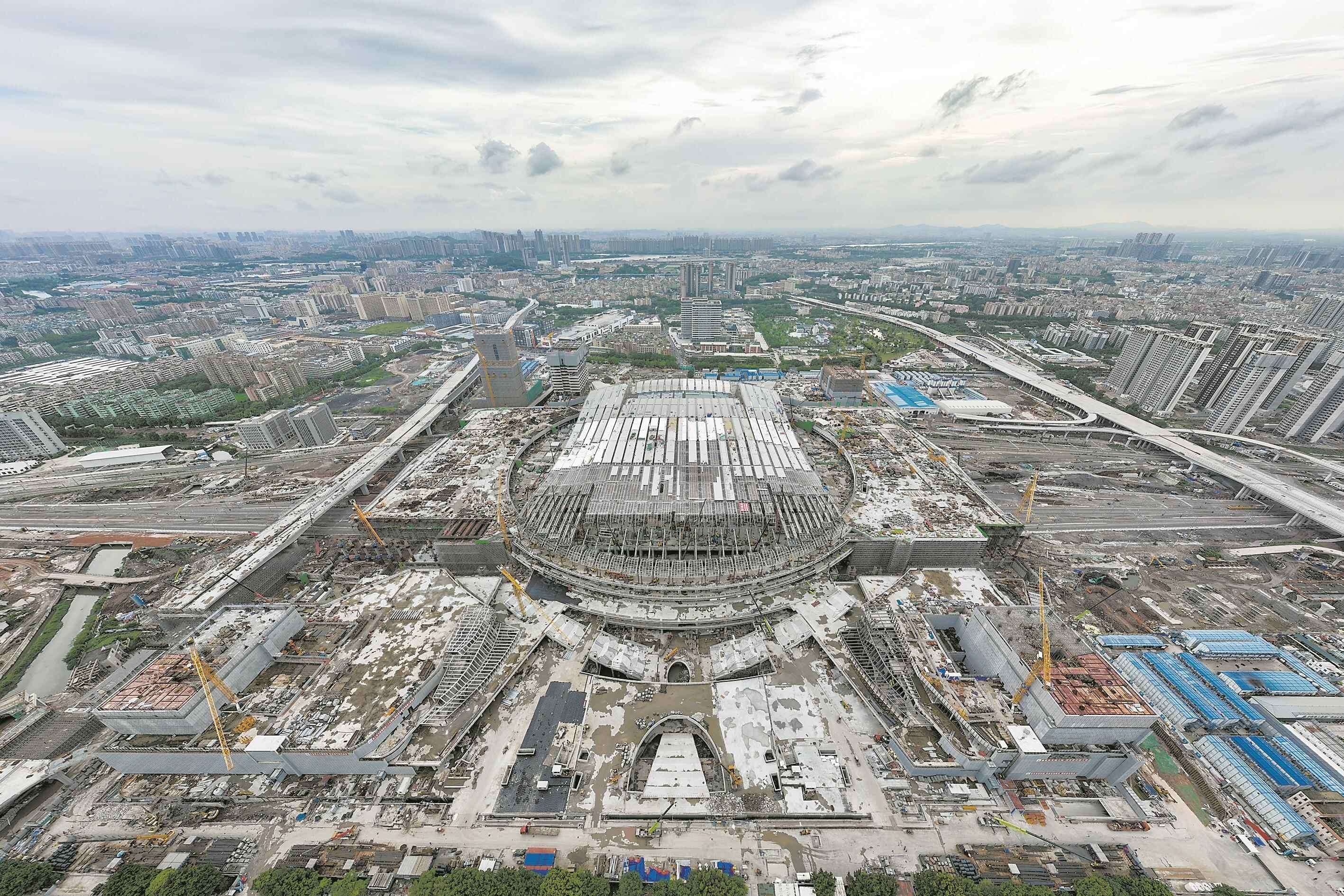 6月19日,随着最后一榀钢结构杆件拼装完成,新建广州白云站正式封顶,标志着站房钢结构整体完工,全面进入室内外装饰装修阶段。预计今年底具备开通条件。