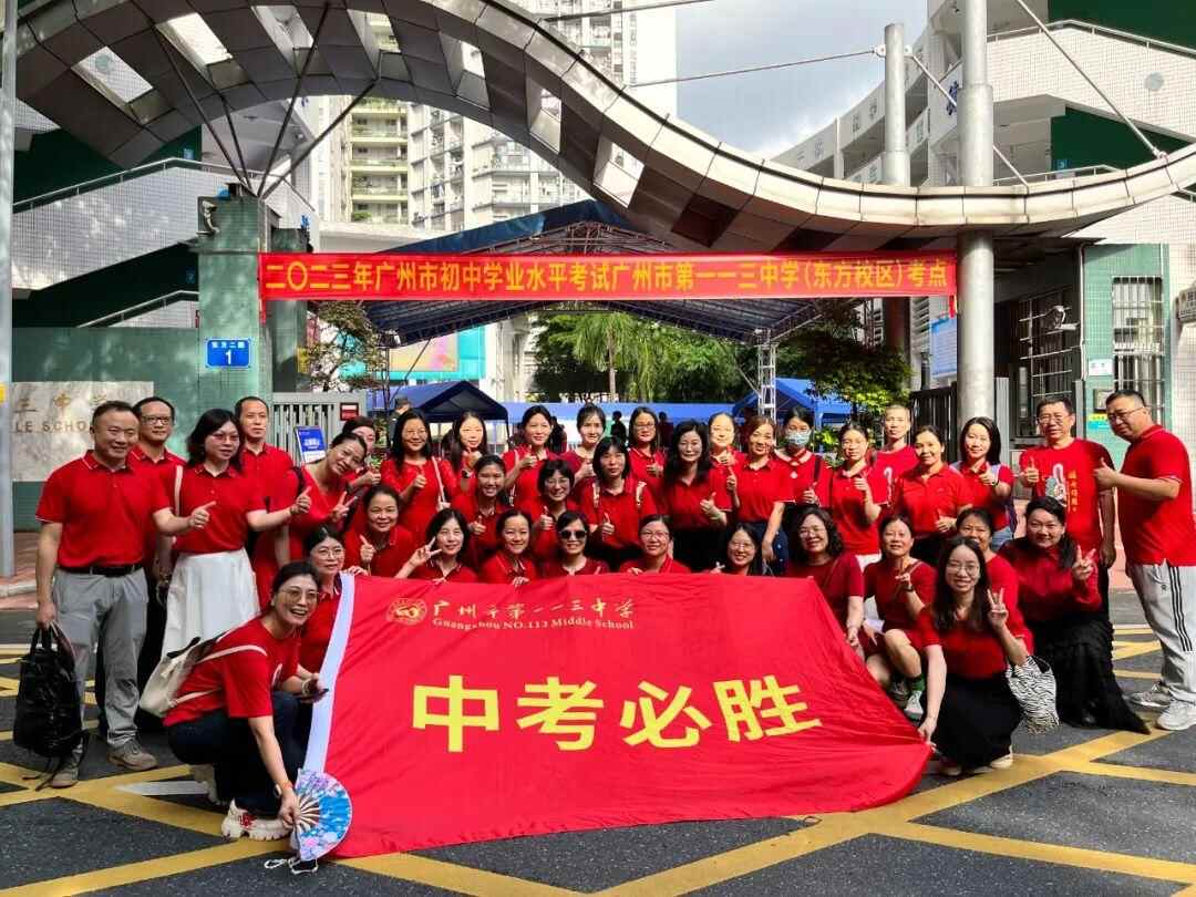 【广州市第一一三中学(东方校区】上午八时三十分,大部分考生已经结束入场,家长在校门外自发地聚在一起,为孩子送上强心剂,“中考必胜”。(记者王沫依)
