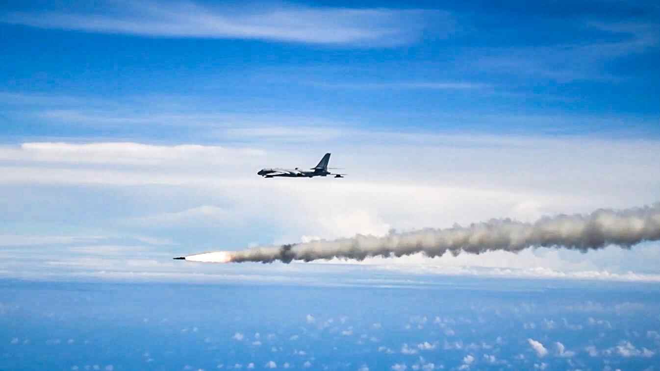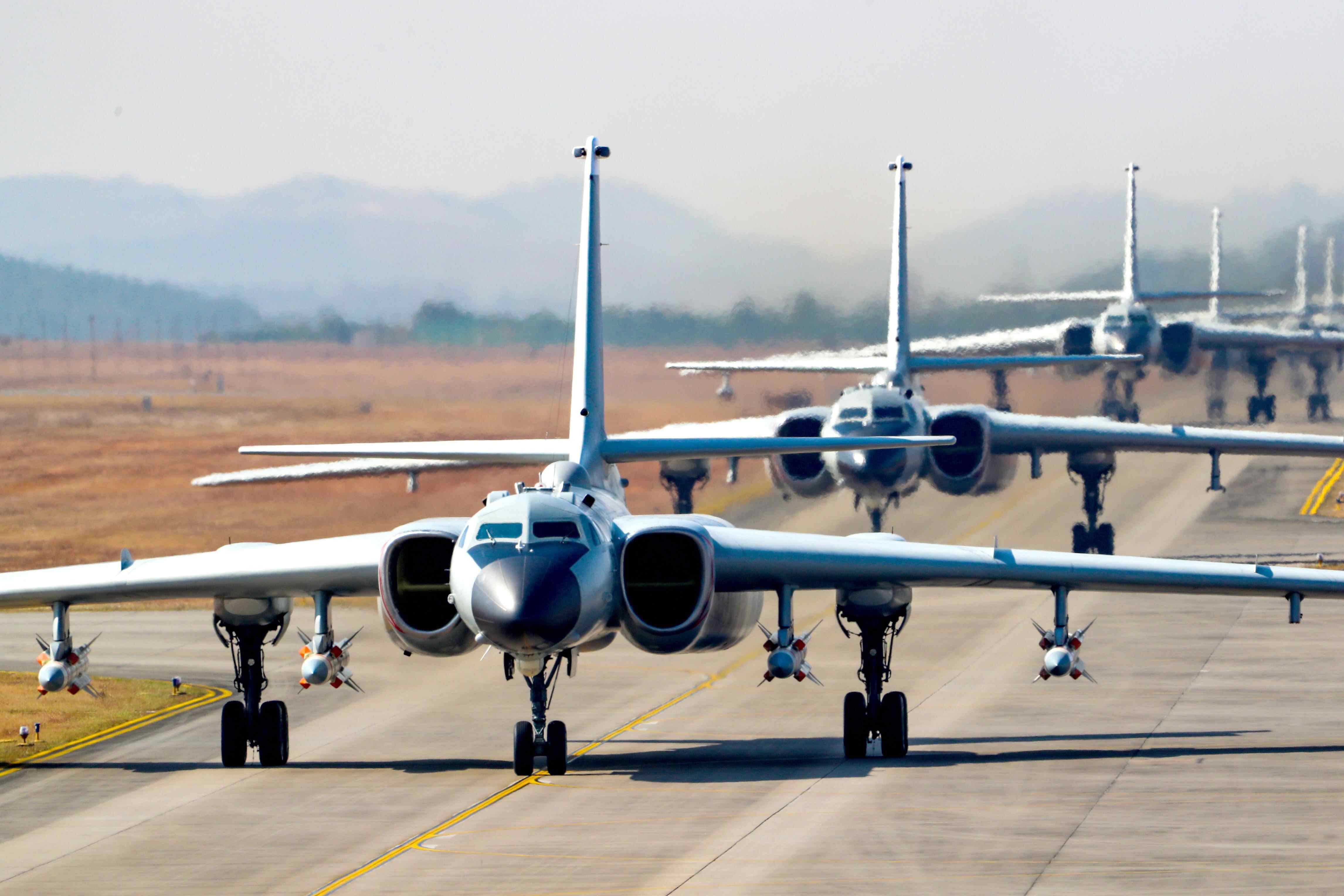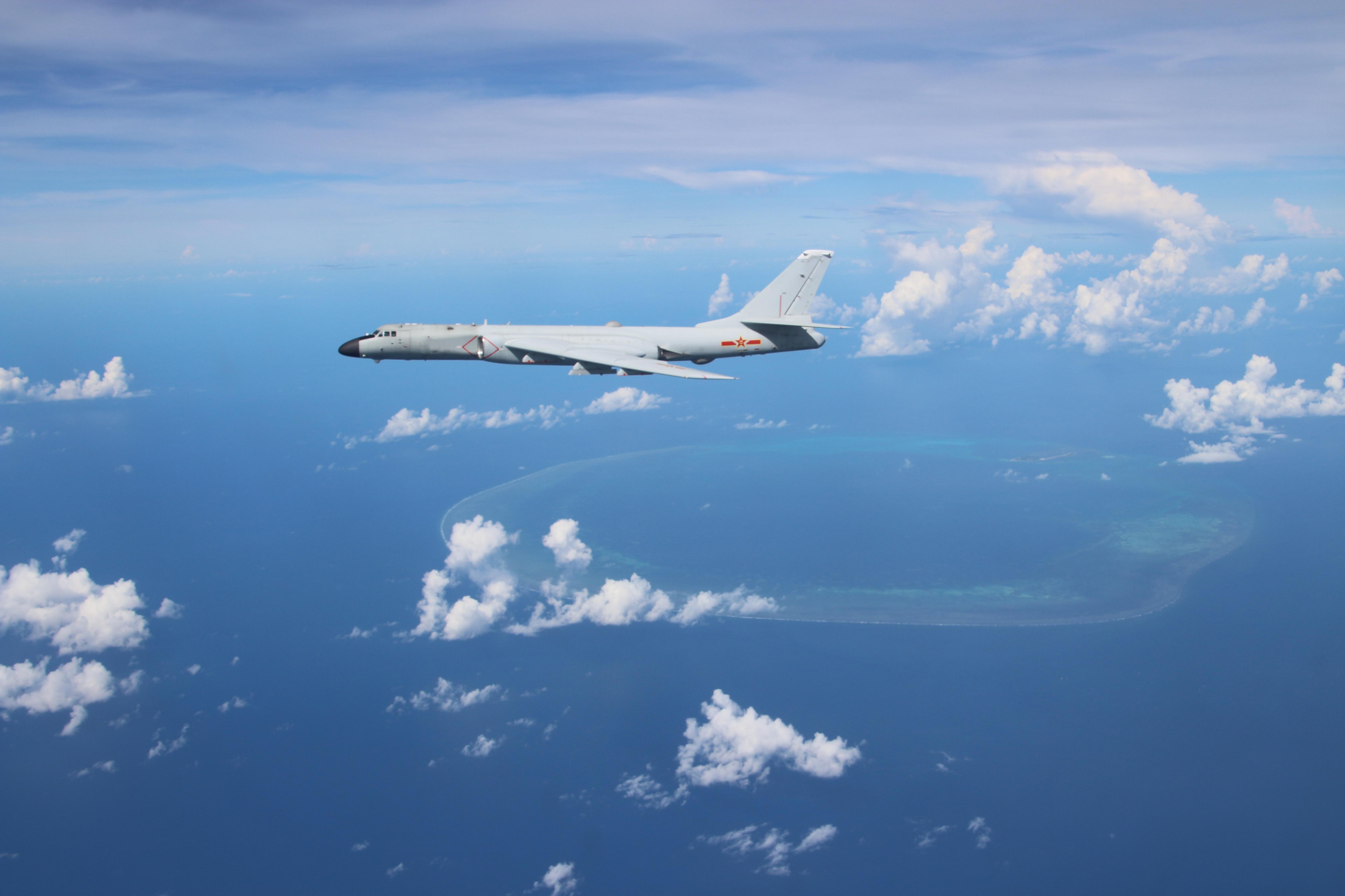 南中国海,宝石般的岛屿镶嵌其中,空军航空兵某团飞行二大队飞行员驾驶两架轰-6K战机,如锋利的箭矢,飞出远海,射向远方。