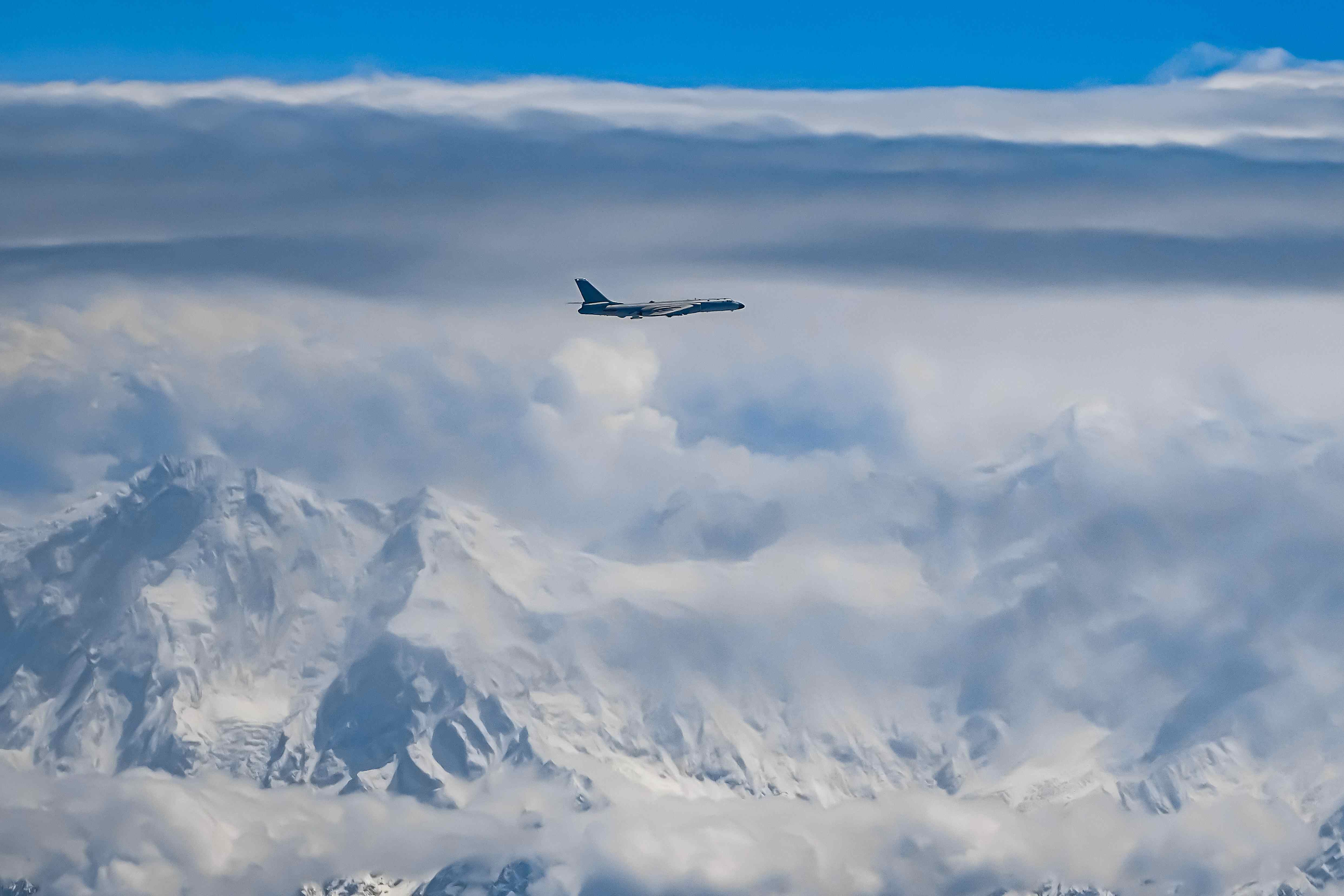 经过数小时数千公里云海穿梭,轰-6K战机编队准时抵达预定阵位,机组从空中俯瞰,一水儿的蓝遍收眼底,航线途经的小岛像宝石般嵌在海中……与近海的蓝不同,这种如今见惯了的远海深蓝对于二大队飞行员意义更深厚。