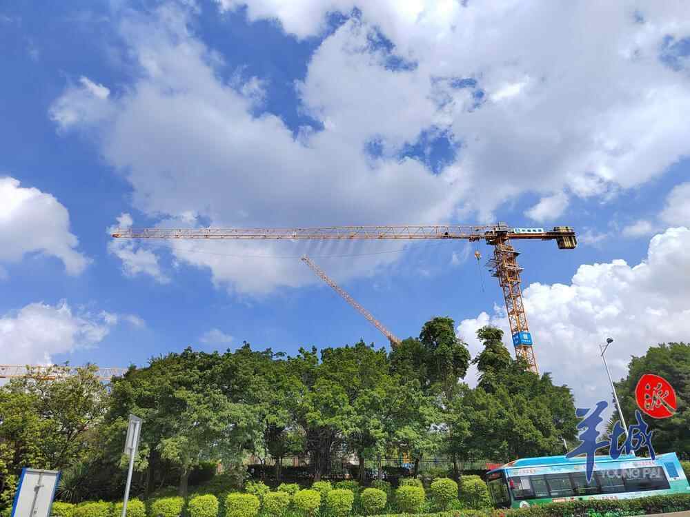 值得一提的是,在施工现场,记者注意到项目采用塔吊喷淋高空降尘系统,实现施工现场喷淋360度旋转全覆盖。据项目安全总监丁智鹏介绍,这是针对施工现场大基坑降尘范围广、管理难度大、传统降尘方式交叉作业安全隐患突出等问题创新采用的技术,保证安全绿色施工。
