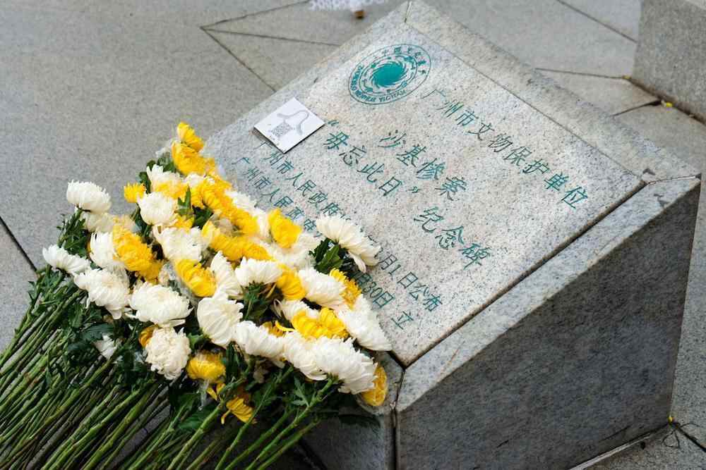 珠江西岸,人民桥头,庄严肃穆,上午9时,广州荔湾区岭南街道组织各界党员、群众代表,在广州市爱国主义教育基地“沙基惨案”纪念碑广场举办“沙基惨案”98周年纪念活动,悼念为反对帝国主义暴行英勇牺牲的先烈。