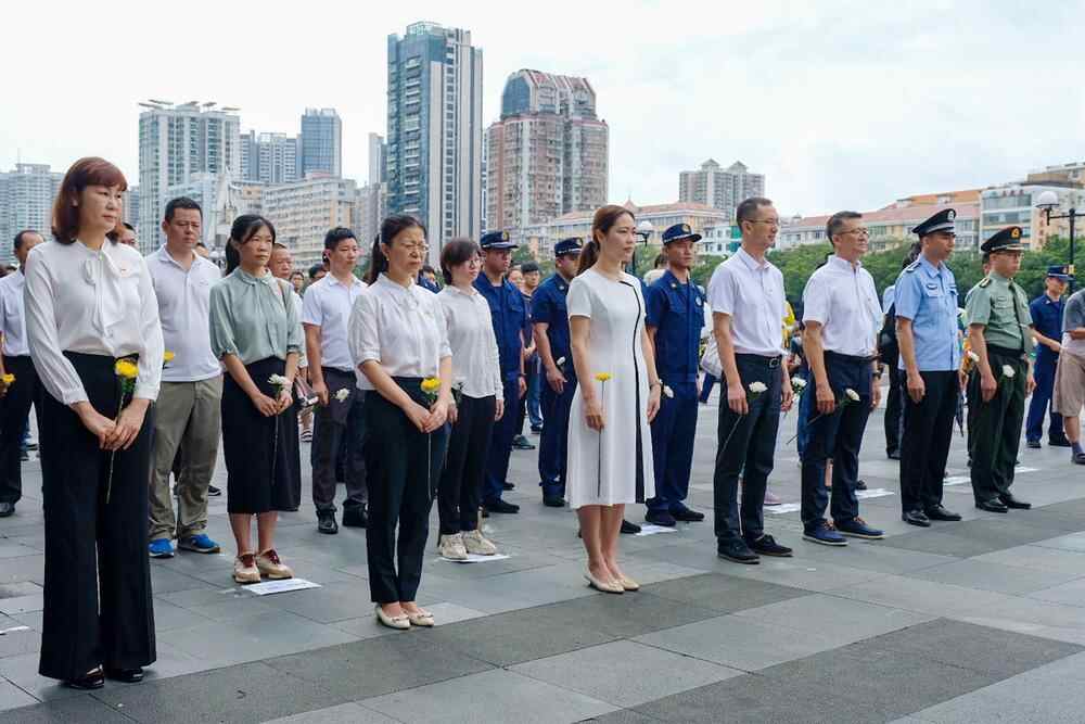 随后,全体代表依次走向纪念碑,献上鲜花,用目光瞻仰着纪念碑,追思革命先烈的丰功佳绩,感受当下来之不易的幸福生活,表达对“沙基惨案”烈士的敬仰和怀念。