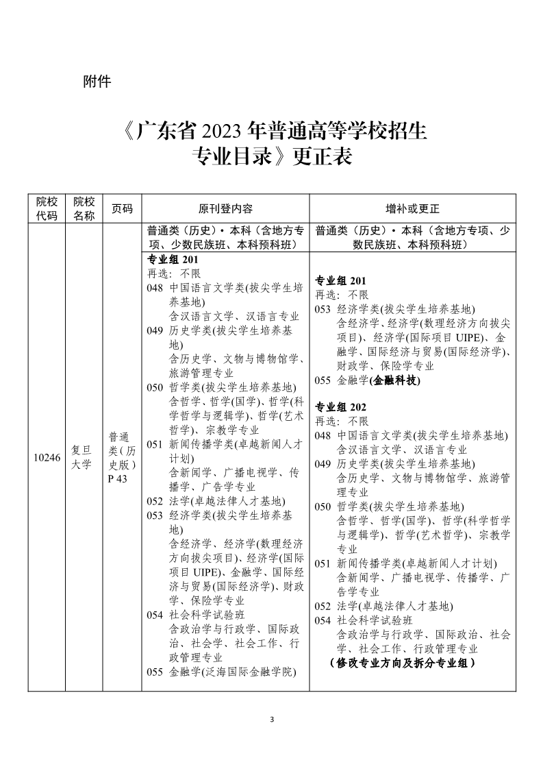 附:《广东省2023年普通高等学校招生专业目录》更正表