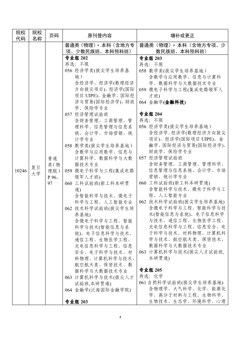 复旦大学方面,普通类(历史)·本科专业组201拆分为专业组201、专业组202,将经济学类、金融学(金融科技)专业与中文、新闻等学科作出了区分。普通类(物理)·本科则把数学类、微电子科学与工程、金融学(金融科技)与其他原202专业组内的专业进行了分离。