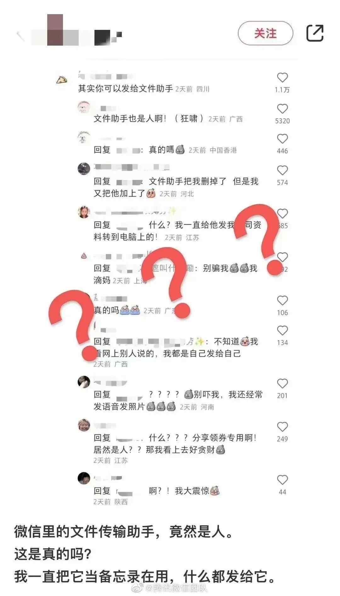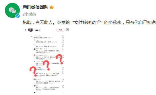 近日,有网友发文称“微信文件传输助手是人”,引发关注。