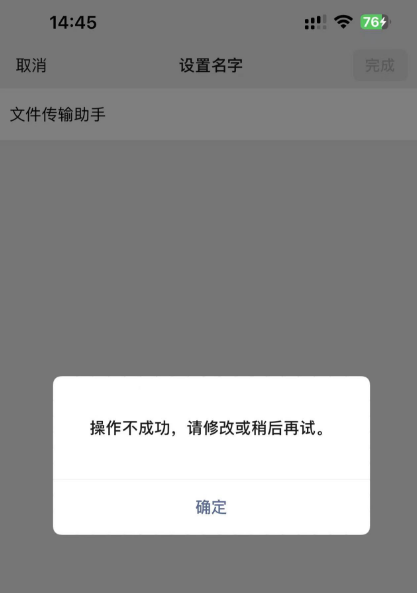 据悉,微信的昵称是不能改成“文件传输助手”,相似的名字都不行,比如:文件传输肋手、文仵传输助手、微信传输助手等。以及“文件传输助手”配套的微信头像,也不可以换。