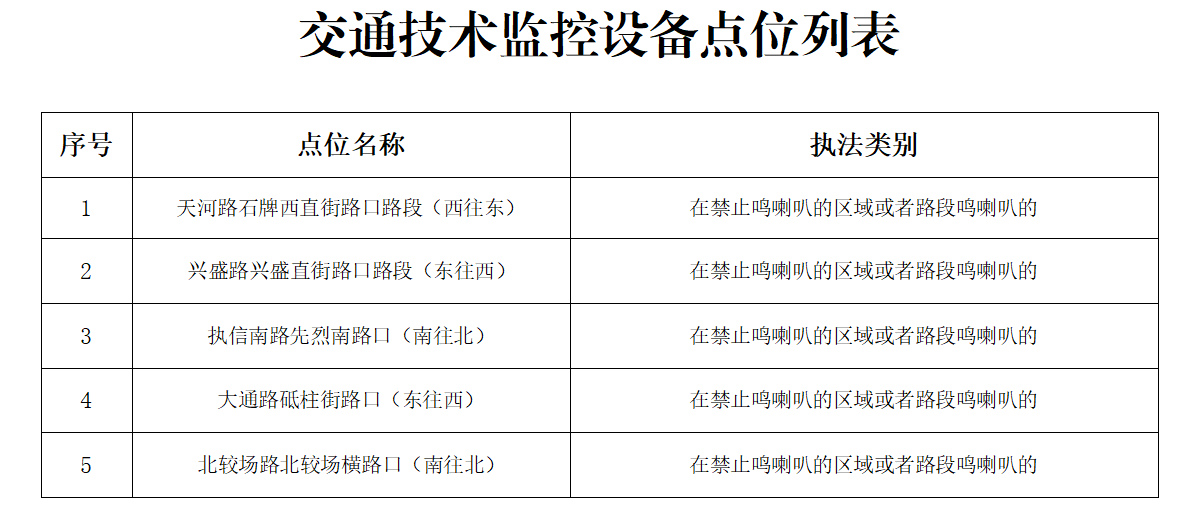6月27日,记者从广州交警获悉,为深化机动车乱鸣喇叭违法行为治理工作,进一步加强广州市文明交通建设,交警部门新增了5套交通技术监控设备。该批新增的设备将于2023年7月26日开始投入使用,交警部门将依法对有交通违法行为的车辆进行拍摄取证并予以执法,请广大驾驶人守法出行、文明驾驶。