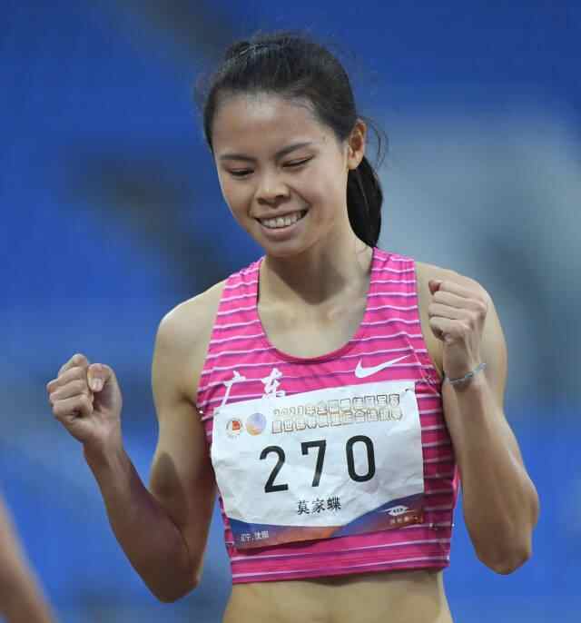 在2017年的全运会上,年仅17岁的莫家蝶就获得了400米栏第5名的好成绩。2021年,她以54秒89的成绩收获了第十四届全运会田径女子400米栏金牌。在前不久结束的全国田径大奖赛上,莫家蝶在女子400米栏比赛中跑出了55秒93的成绩获得冠军。