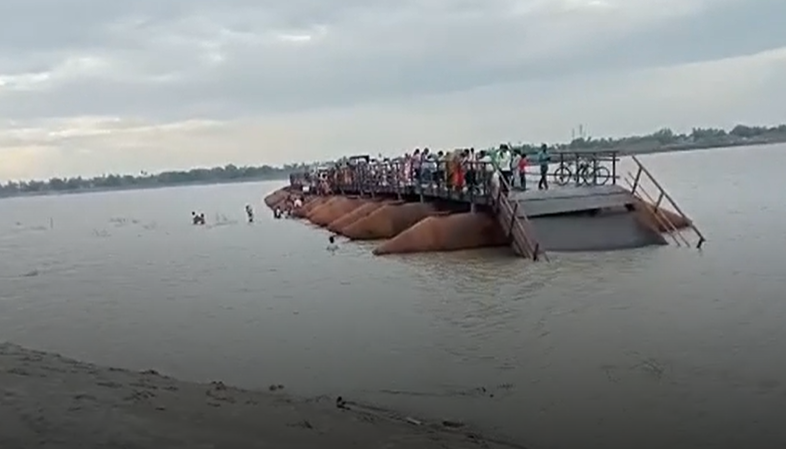 据今日印度网站28日报道,近日,印度比哈尔邦一座桥梁在大风中发生坍塌,导致大批正在过桥的行人被困河中,动弹不得。