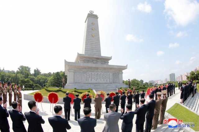 中朝友谊塔内部改造工程竣工仪式28日上午在平壤牡丹峰北侧的中朝友谊塔前举行。