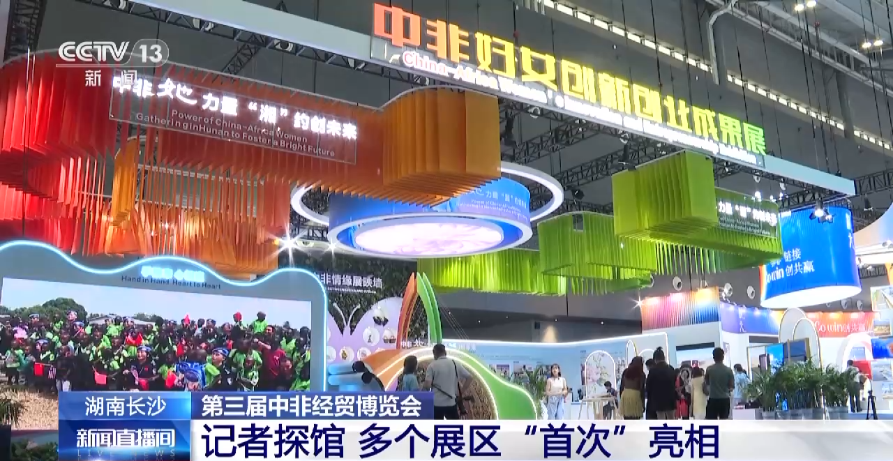 总台记者傅蕾:今天(30日)是第三届中非经贸博览会开幕的第二天,我发现了本届博览会的多个“首次”,包括首次设置9场由国家部委和机构主办的高端活动;首次聚焦中医药合作、质量基础设施、妇女交流、职业教育等领域举办论坛和研讨会;首次围绕特色轻工产品和纺织服装举办贸易洽谈会。同时,在长沙国际会展中心主展馆首次设立中非高质量共建“一带一路”成果展、中非妇女创新创业成果展,这也是本次展会的一大特色。