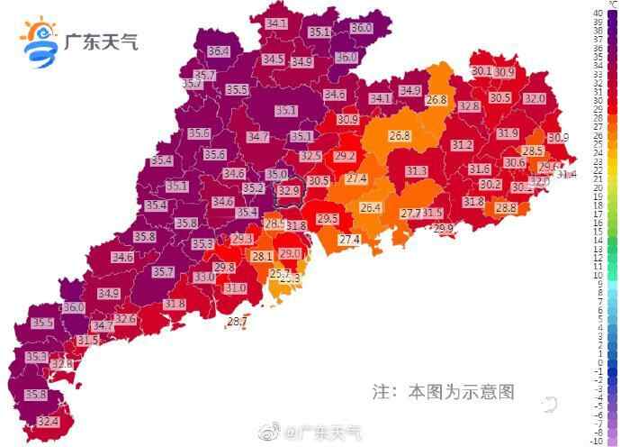 看看昨天15时的气温,广东最高气温出现在连州36.4℃。