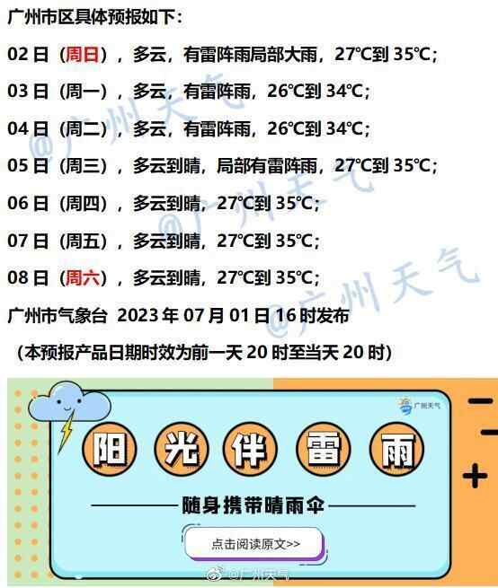 此外,气象部门预计,7月有1~2个热带气旋影响广州。重点关注时段为:7月中旬末、下旬中后期。