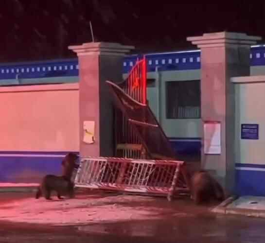 今年5月深夜,多只棕熊出现在巴青县贡日乡检查站门口,驱赶吓跑了犬只,又掀翻了大铁门闯入。