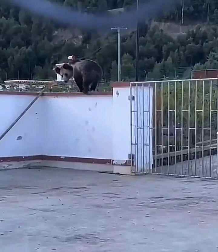去年8月,又有人在边坝县拍到了一只大熊,脚爪敏捷爬上了围墙,对墙头安装的玻璃碎片没有畏惧,直接翻过了围墙。